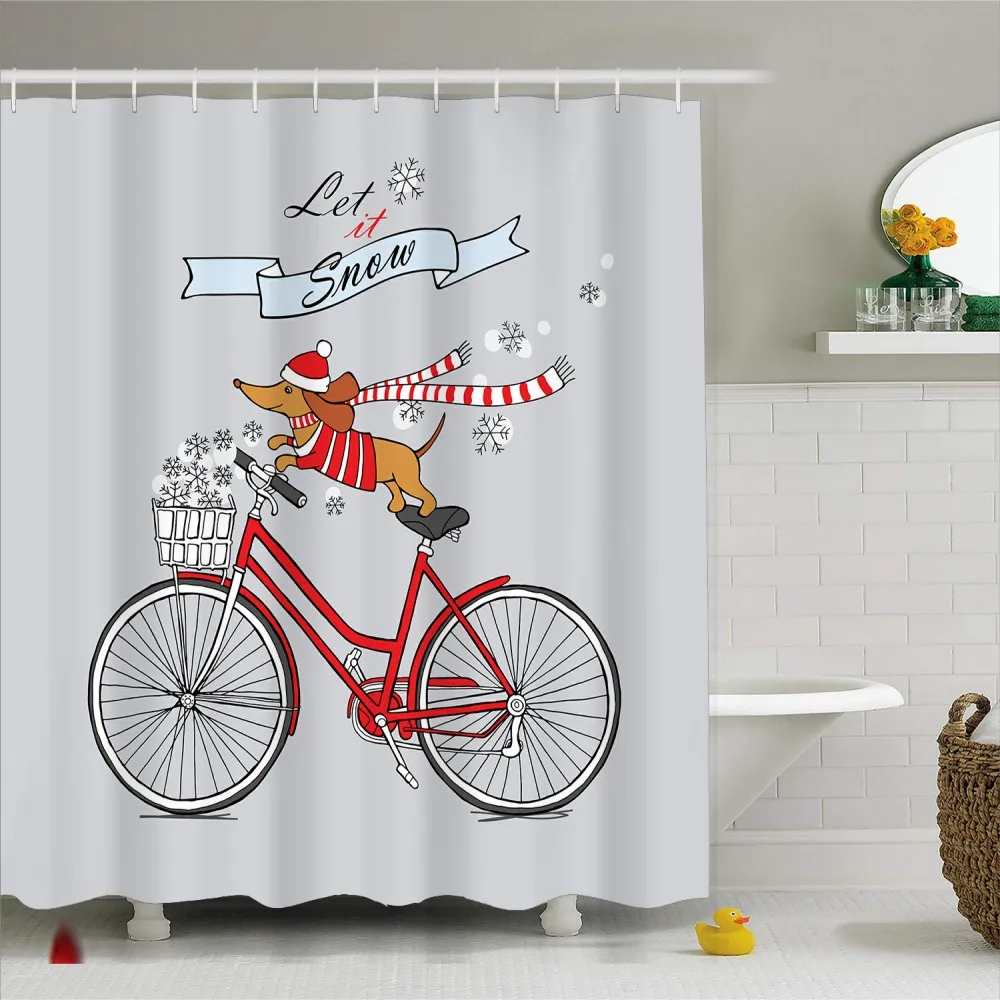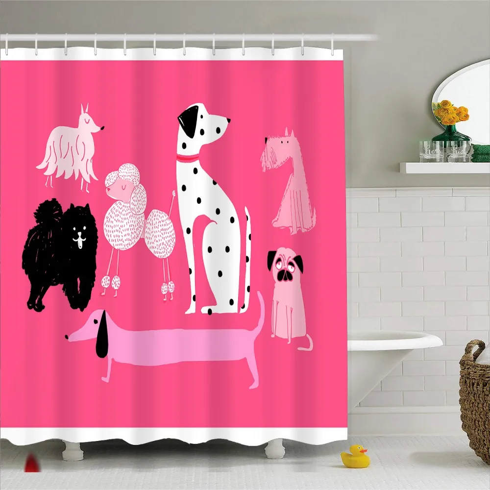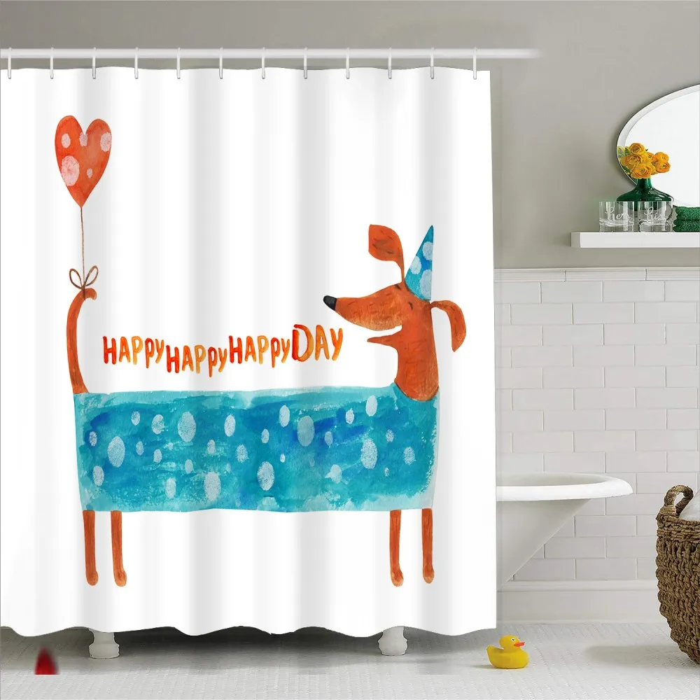 HOT Sale Funny Dog Shower Curtain Dachshund Print Durable Waterproof Polyester Bath Curtain with Hooks Bathr