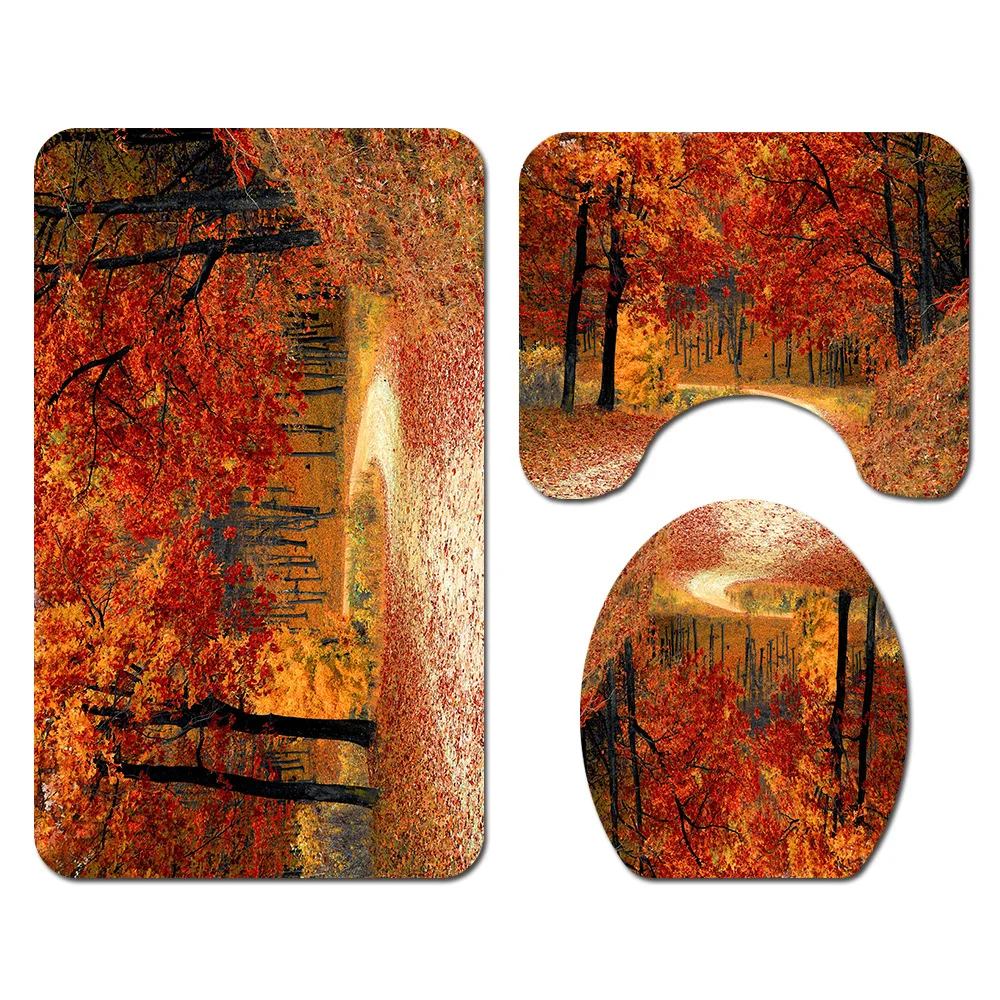 Landscape Waterproof 3D Shower Curtain Autumn Forest Printed Bathroom Curtains Rug Sets Toilet Cove