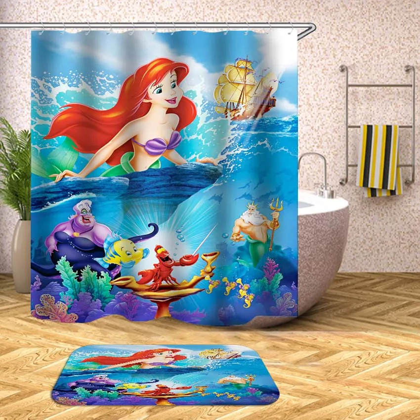 Cartoon Mermaid Shower Curtain Sea World Waterproof Bath Curtains for Bathroom Bathtub Bathing Cove