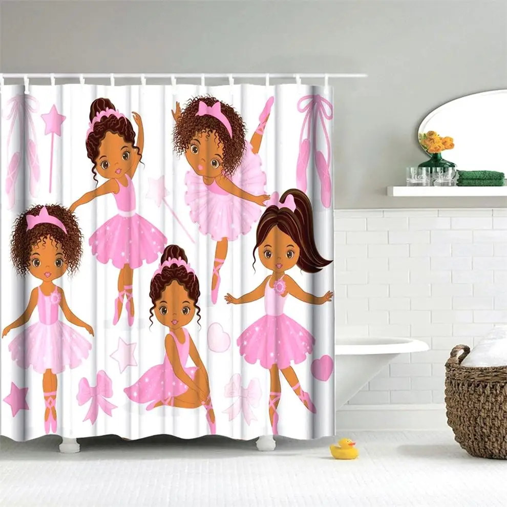 Dafield Pink Princess Shower Curtain Cute Girl with Ballerina Dancer Skirt Kids Girls Bath African