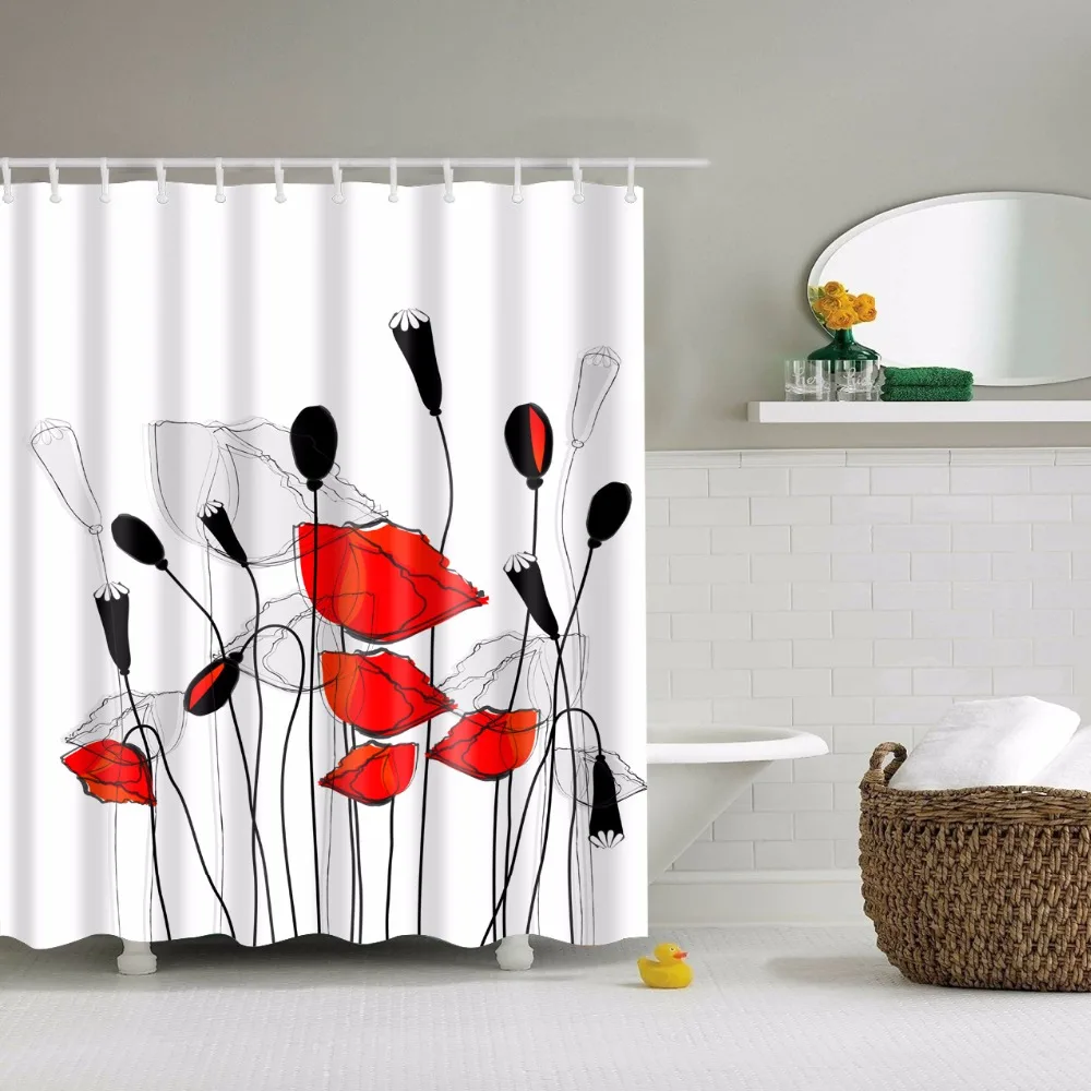 Floral Bamboo Dandelion Maple Leaf Flower Fabric Waterproof Polyester Shower Curtains Bathroom Curt