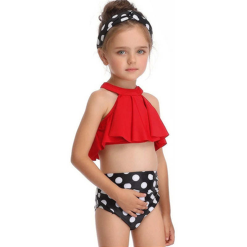 HOT SALE MrY Parent-child Halter Straps Swimsuit Mother Daughter Swimwear High Waist Bathing Swimsuit