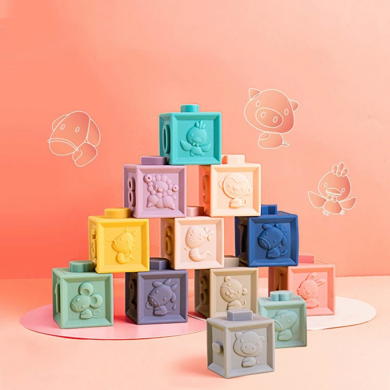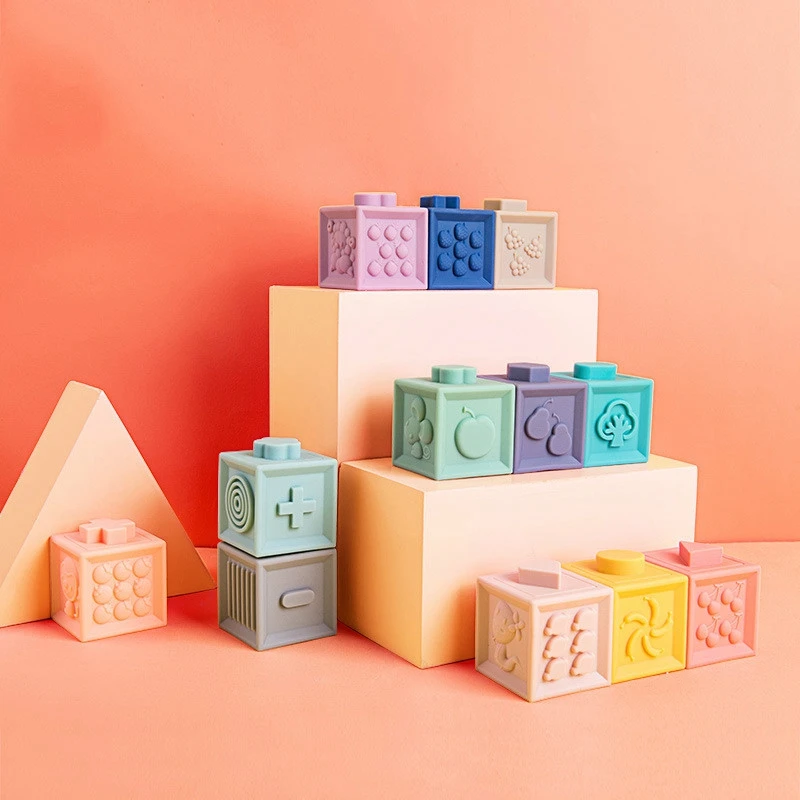 BEST Baby Catching Toys Baby Soft Rubber Embossed Blocks Teether Squeeze Toys Bath Ball Toys 6-12 Months